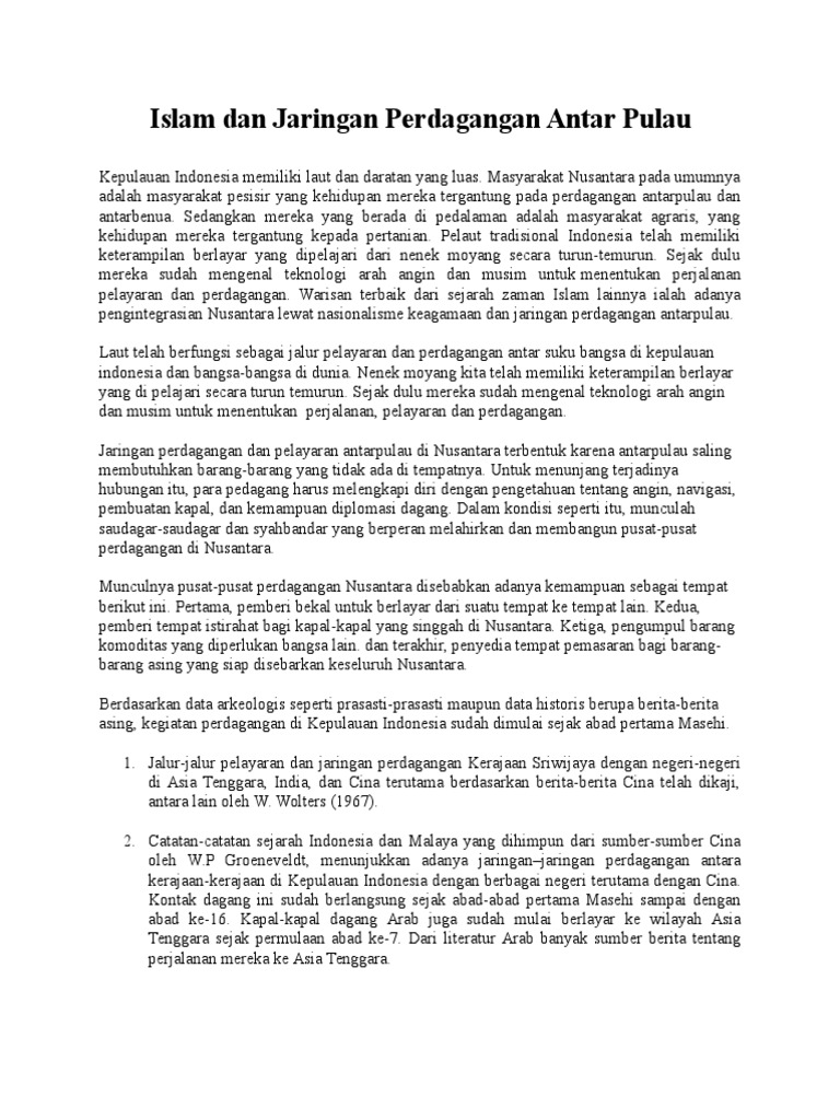 Islam Dan Jaringan Perdagangan Antar Pulau