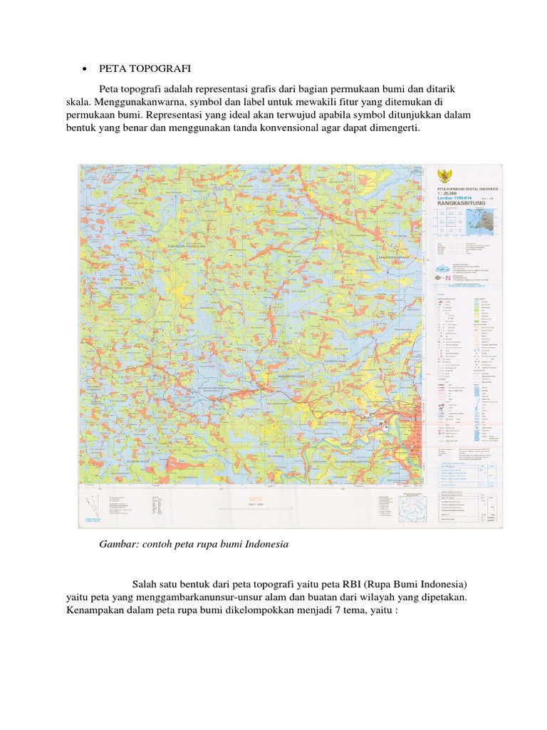 Peta satelit dari google. Salah satu jenis peta khusus adalah peta topografi. Peta ini dinamai sebagai peta rbi rupa bumi indonesia dan merupakan salah satu peta dasar yang digunakan dalam perencanaan ekspedisi dan aktivitas navigasi lainnya.