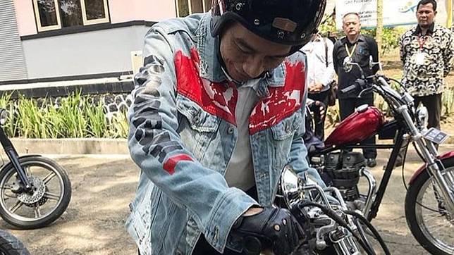 Kenakan Jaket Jeans Jokowi Touring Naik Motor Chopperland Sejauh